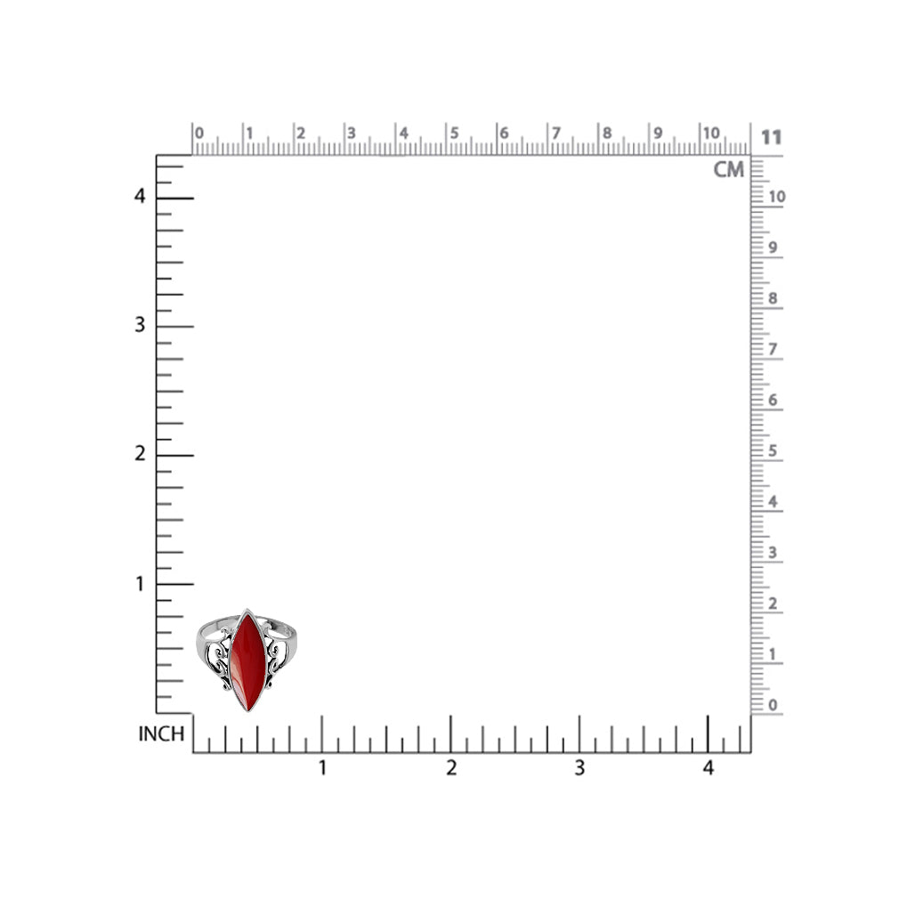 Created Marquise Shape Red Coral Inlay 925 Sterling Silver Filigree Swirl and Spiral Style Ring Jewelry for Women