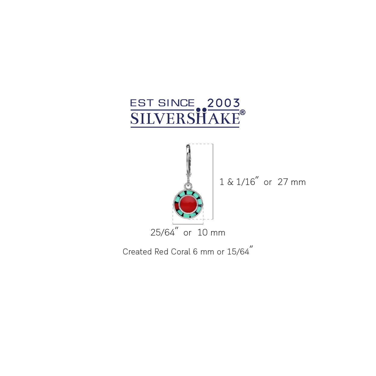 Petite Created Red Coral with Navajo Mosaic Style Blue Turquoise Inlay 925 Sterling Silver Leverback Circle Disc Earrings Jewelry for Women