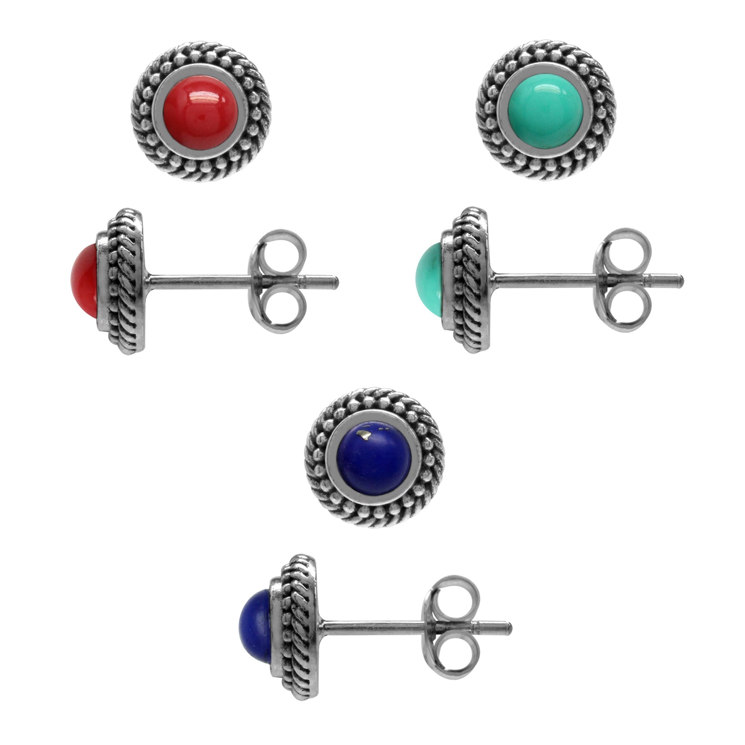 https://silvershake.com/products/3-pair-set-created-coral-turquoise-and-lapis-925-sterling-silver-rope-balinese-style-stud-earrings