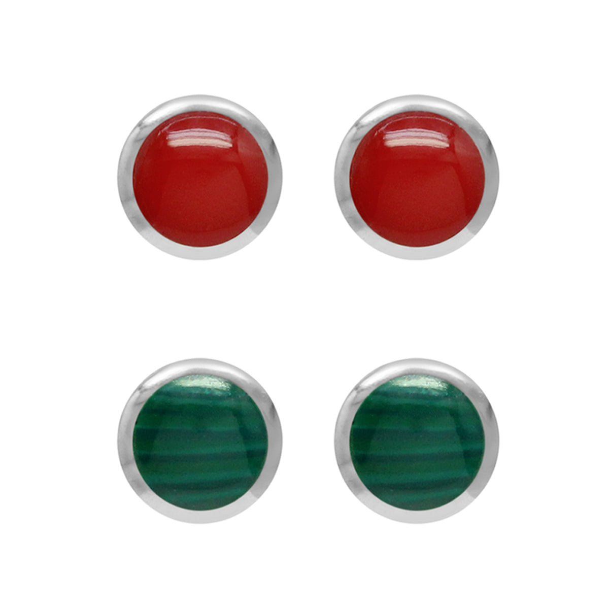 Petite 4mm Round Created Red Coral and Green Malachite Inlay 925 Sterling Silver Christmas Stud Earrings Womens Jewelry Best for Second and Third Hole Set of 2 Pairs