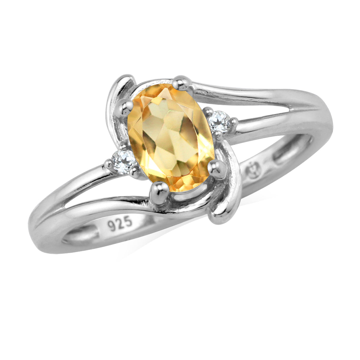 7X5mm Genuine Oval Shape Yellow Citrine and White Topaz 925 Sterling Silver Engagement Ring November Gemstone Birthstone