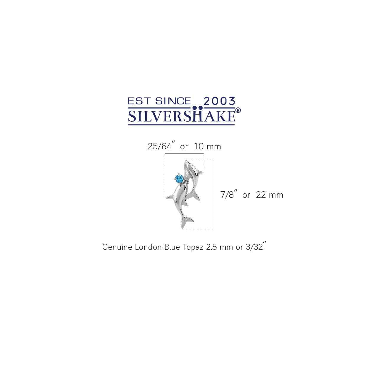 Genuine Round Shape London Blue Topaz White Gold Plated 925 Sterling Silver Twin Dolphin Sealife Casual Pendant