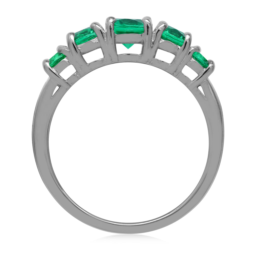 5-Stone Created Round Shape Nano Green Emerald White Gold Plated 925 Sterling Silver Ring May Gemstone Birthstone
