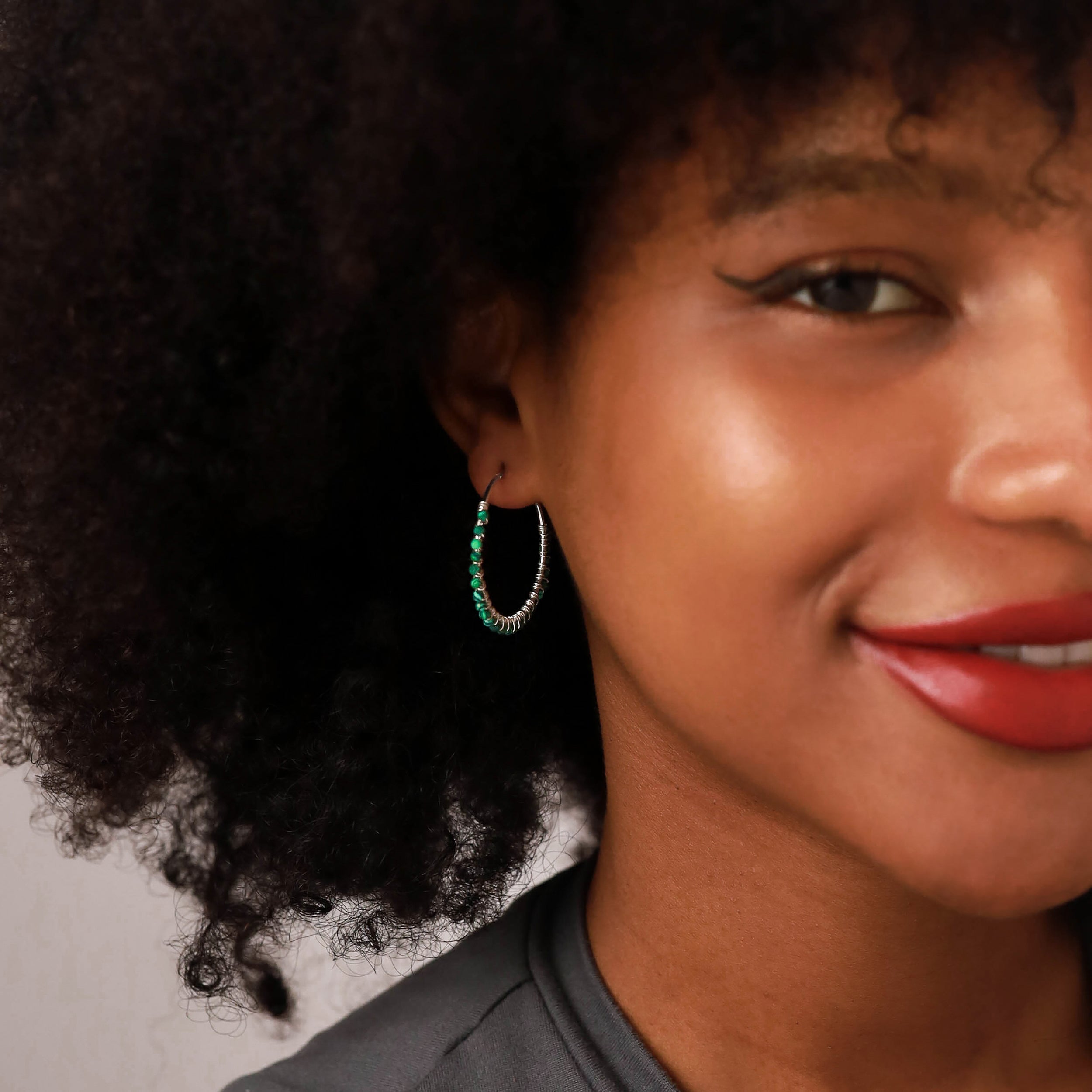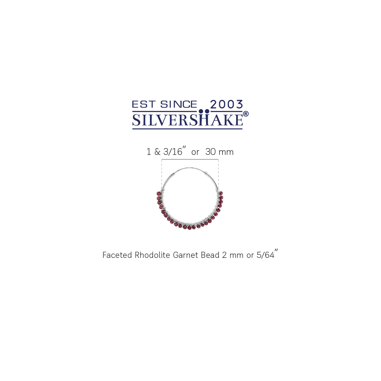 30MMx2MM Natural Rhodolite Garnet Gemstone Bead 925 Sterling Silver Boho 1.18 Inch Handmade O-Hoop Earrings Jewelry for Women