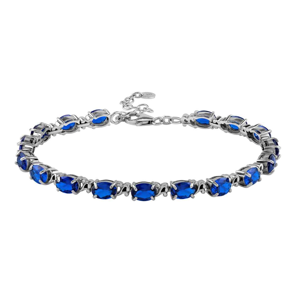 7X5mm Created Oval Shape Blue Sapphire 925 Sterling Silver Victorian Style 7.5 to 9 Inch Adjustable Bracelet September Gemstone Birthstone Jewelry for Women