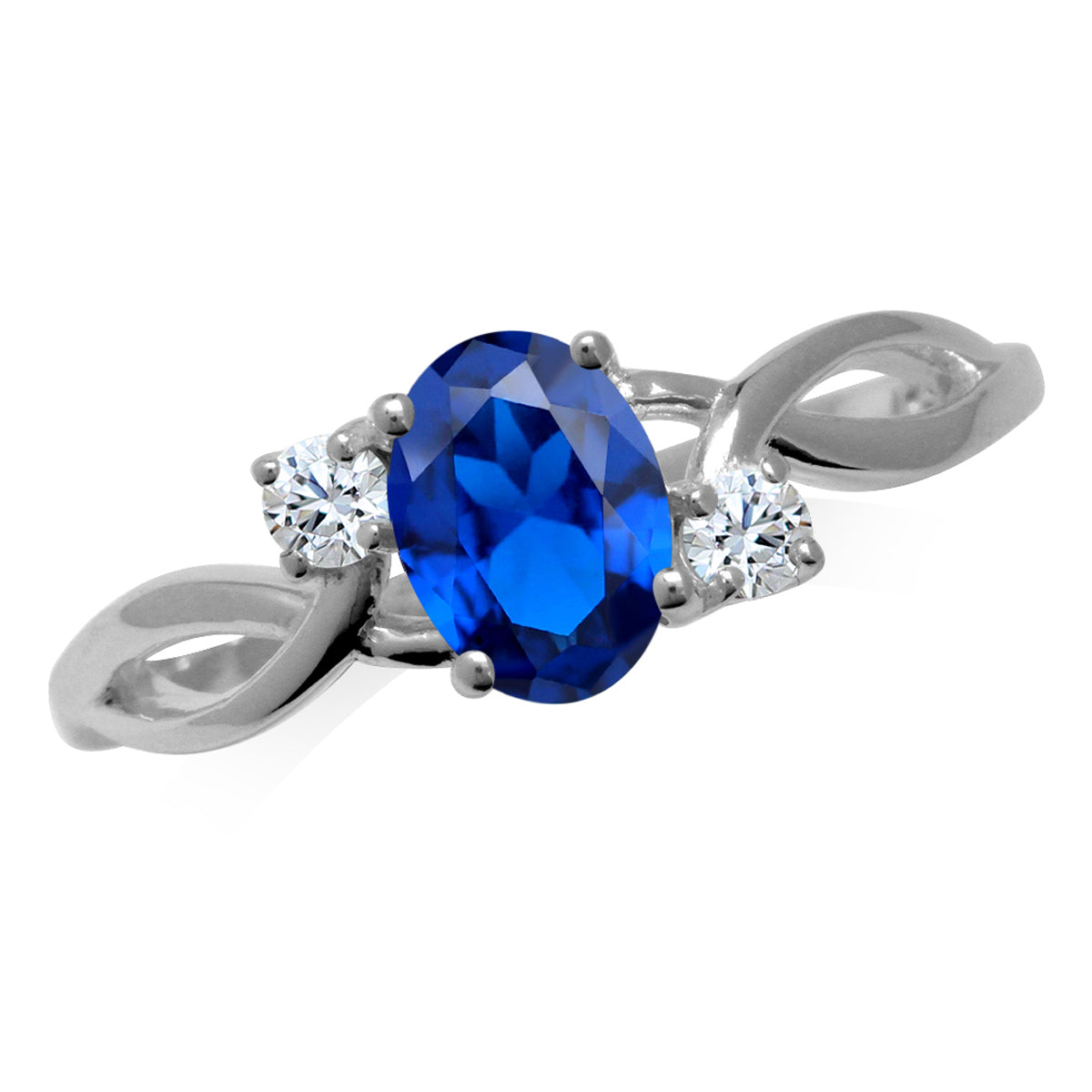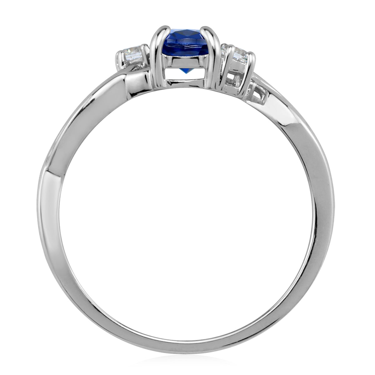 7X5mm Created Oval Shape Blue Sapphire White Gold Plated 925 Sterling Silver Engagement Ring September Gemstone Birthstone