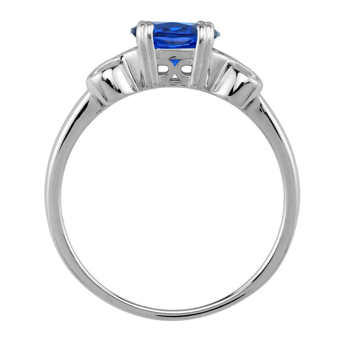 8X6mm Created Oval Shape Blue Sapphire 925 Sterling Silver Victorian Inspired East-West Solitaire Ring