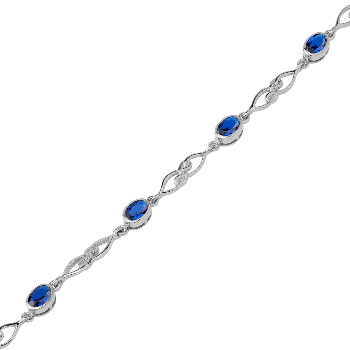 Created Blue Sapphire White Gold Plated 925 Sterling Silver Scroll / Filigree Celtic Knot Weave 6 to 7.5 Inch Adjustable Bracelet September Gemstone Birthstone