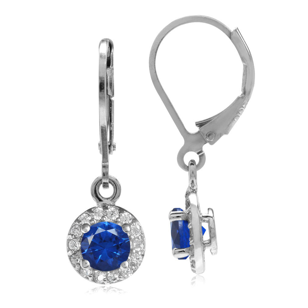 Silvershake 5mm Synthetic Sapphire Blue and White Cubic Zirconia Gold Plated 925 Sterling Silver Halo Leverback Earrings