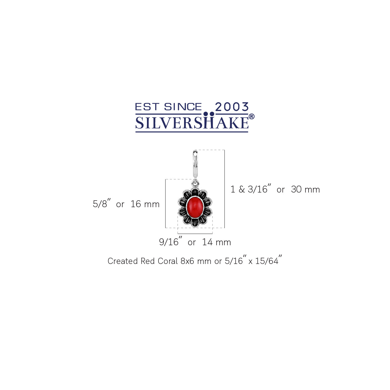 Silvershake 8X6mm Created Oval Shape Red Coral Cabochon 925 Sterling Silver Dangle Flower in C Hoop Stud Post Earrings Jewelry for Women