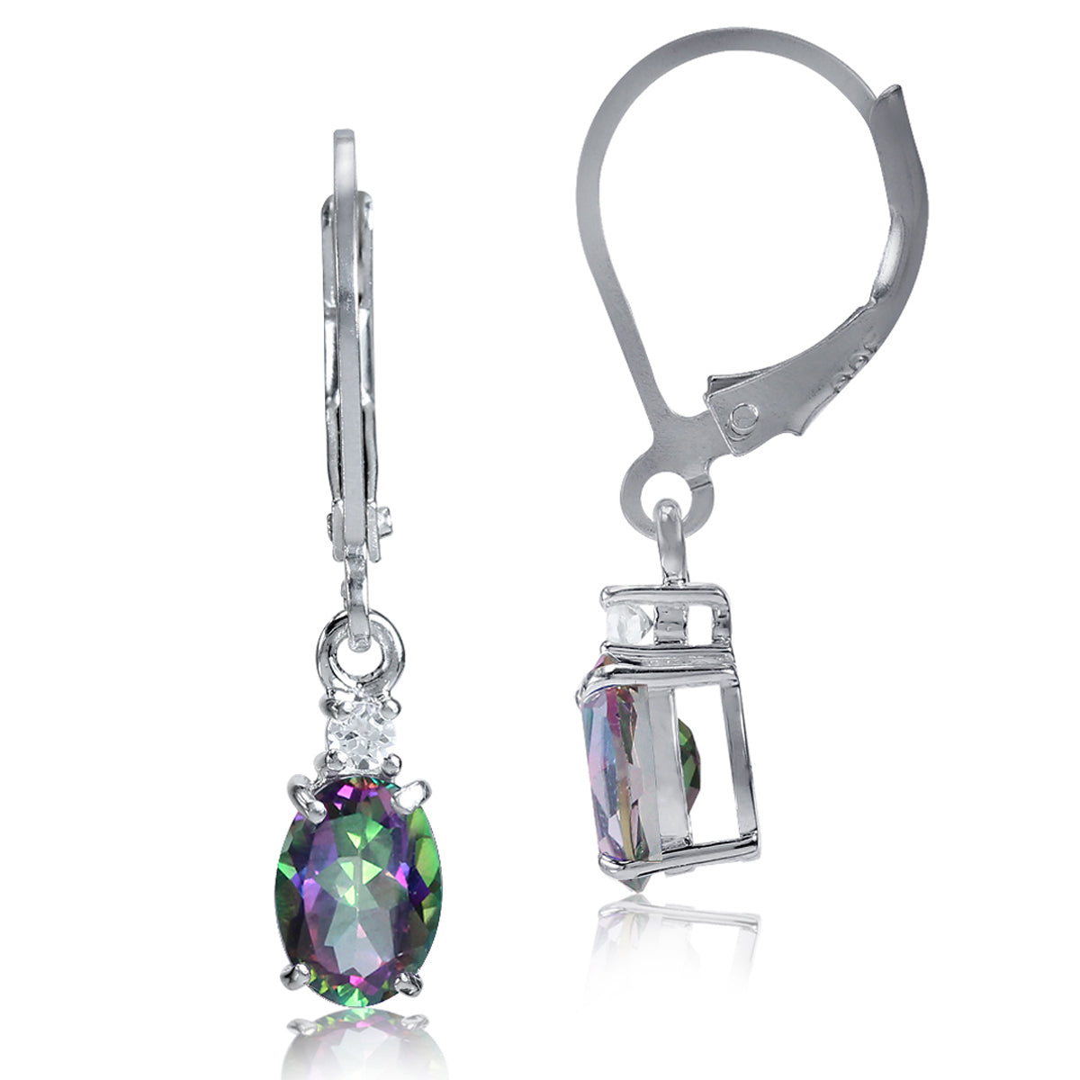 1.64ct. 7x5mm Oval Shape Mystic Fire Topaz White Gold Plated 925 Sterling Silver Leverback Dangle Earrings