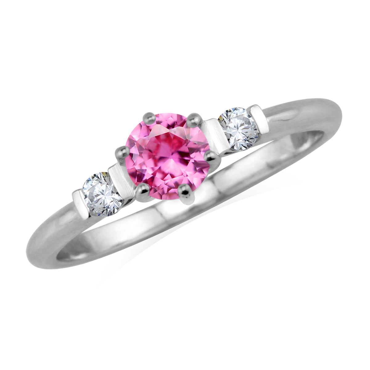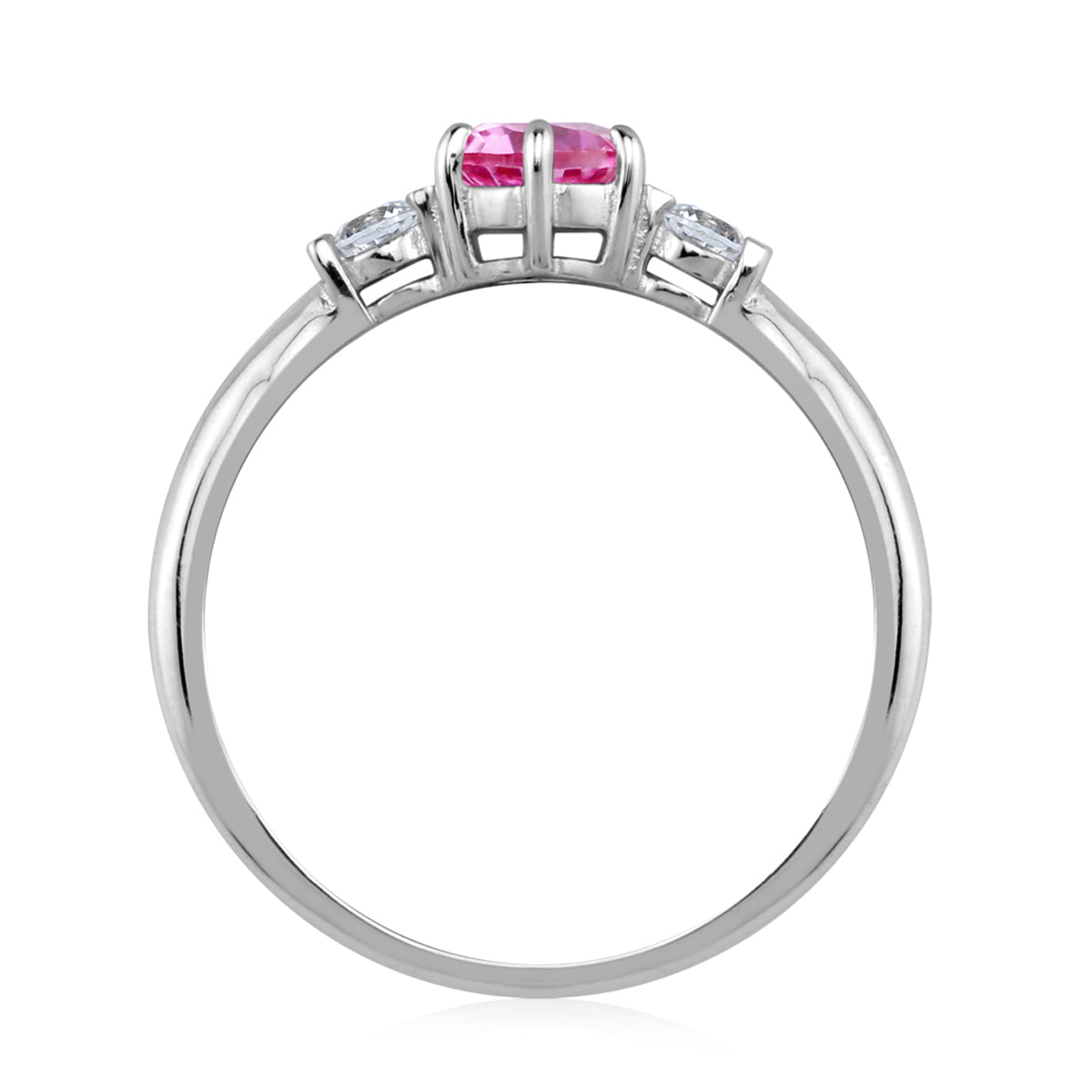 Petite Created Round Shape Pink Tourmaline White Gold Plated 925 Sterling Silver Promise Ring October Gemstone Birthstone