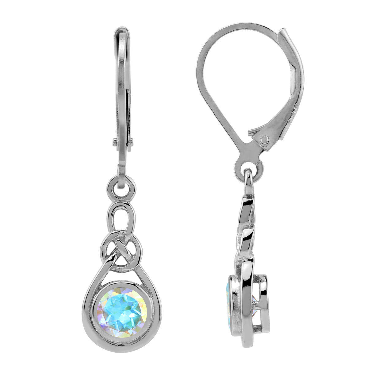 1.18 CTW 5MM Genuine Round Shape Mercury Mist Aurora Borealis (AB) Topaz 925 Sterling Silver Celtic Knot Weave Leverback Dangle Gemstone Earrings Jewelry for Women