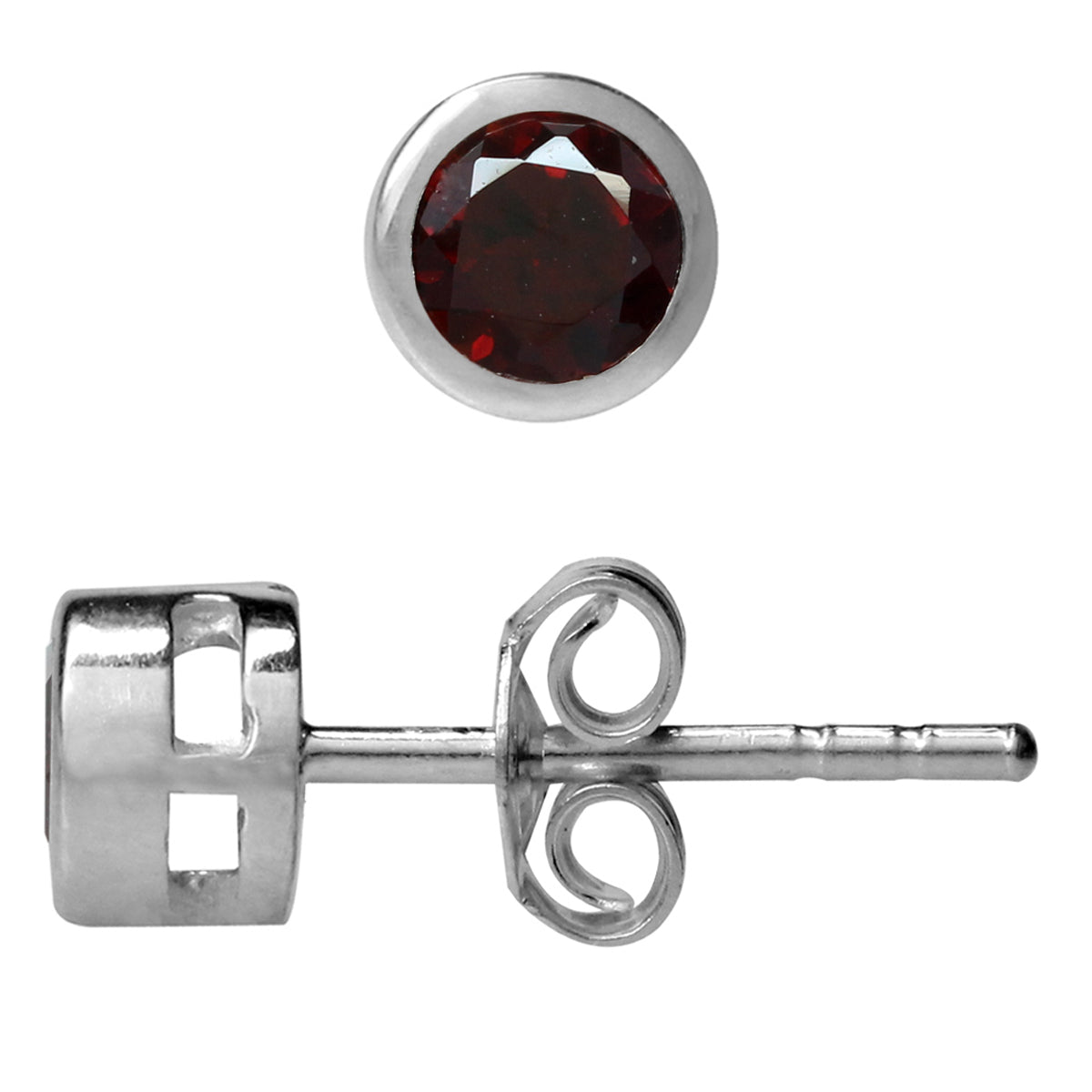 4MM Petite Natural Round Shape Red Garnet 925 Sterling Silver Bezel Set Stud Earrings for Second or Third Hole Unisex Jewelry for Women or Men January Gemstone Birthstone