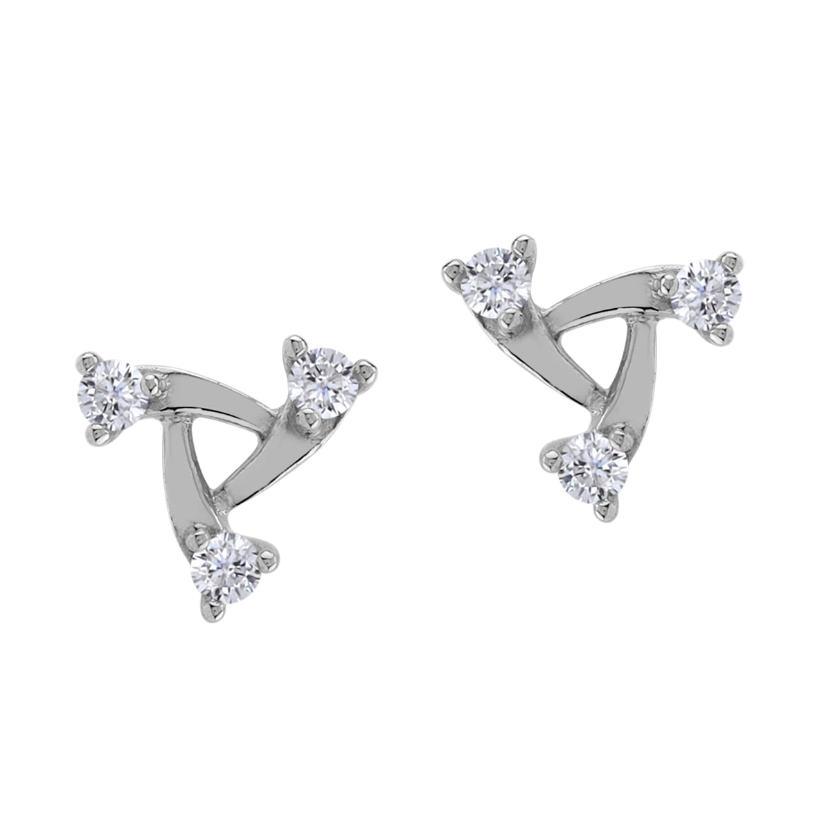 Silvershake 7MM 3-Stone Cubic Zirconia White Gold Plated 925 Sterling Silver Minimalist Trendy Chic Triangle Design Stud Post Earrings April Gemstone Birthstone Jewelry for Women